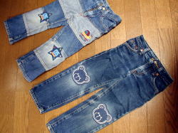 | ユウの小さくなったズボンは膝に穴が開いていました。 ルナにお下がりする前に、ルナの希望で市販のワッペンをつけました。 この手のワッペンは安くていいです。 種類は少ないけど・・・。 |