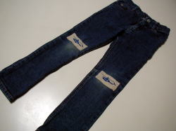 | ティンカーベルのストレッチジーンズにかなり大きな穴が開きました。 ユウの穴あき靴下のヘリコプターをワッペンにしました。 |